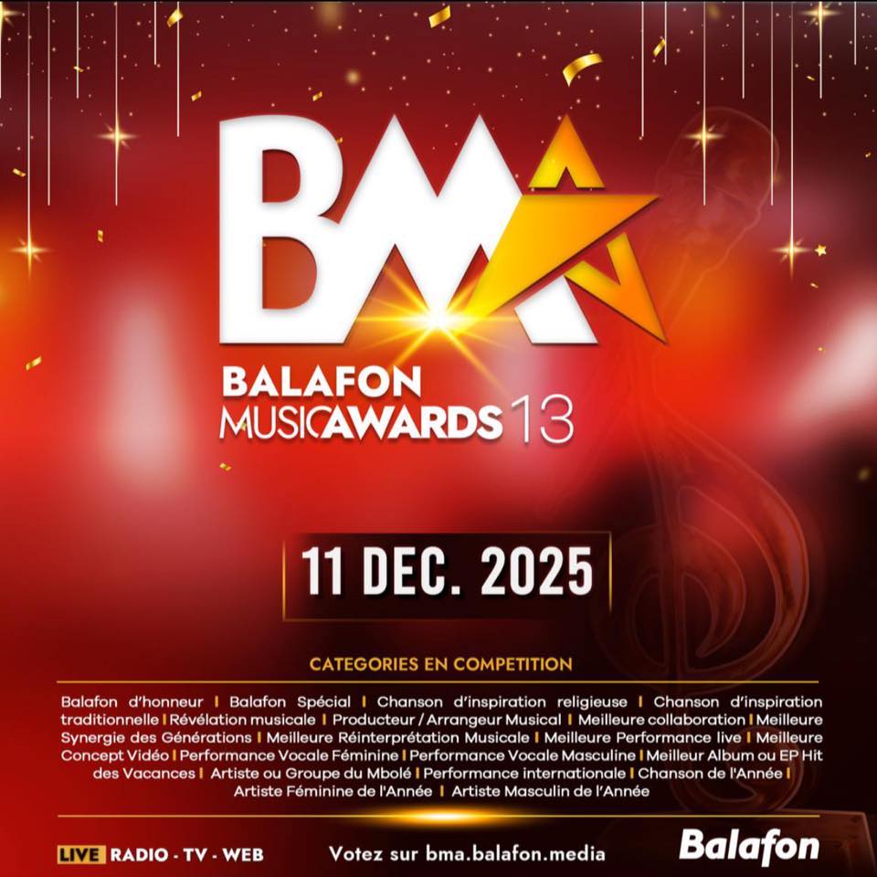 La 13e édition des Balafon Music Awards (BMA) s’apprête à captiver une fois de plus les fans, les artistes et les acteurs de l’industrie le 11 décembre 2025 à Douala. Considérés comme l’un des événements de divertissement les plus prestigieux du Cameroun, les Balafon Music Awards célèbrent l’excellence, la créativité et les performances des talents musicaux du pays, tous genres confondus.
